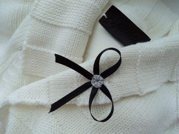 1. Из ленточки складываем бантик, закалываем булавкой к изделию.