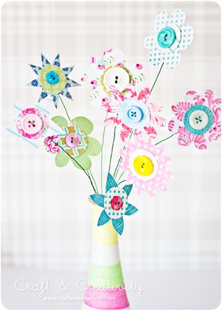 Поделки: Цветы из бумаги и пуговиц