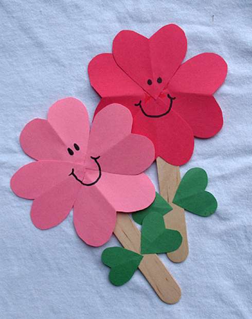 Суть идеи проста: сделать цветок с лепестками в форме сердечек с стеблем из палочки от мороженного.